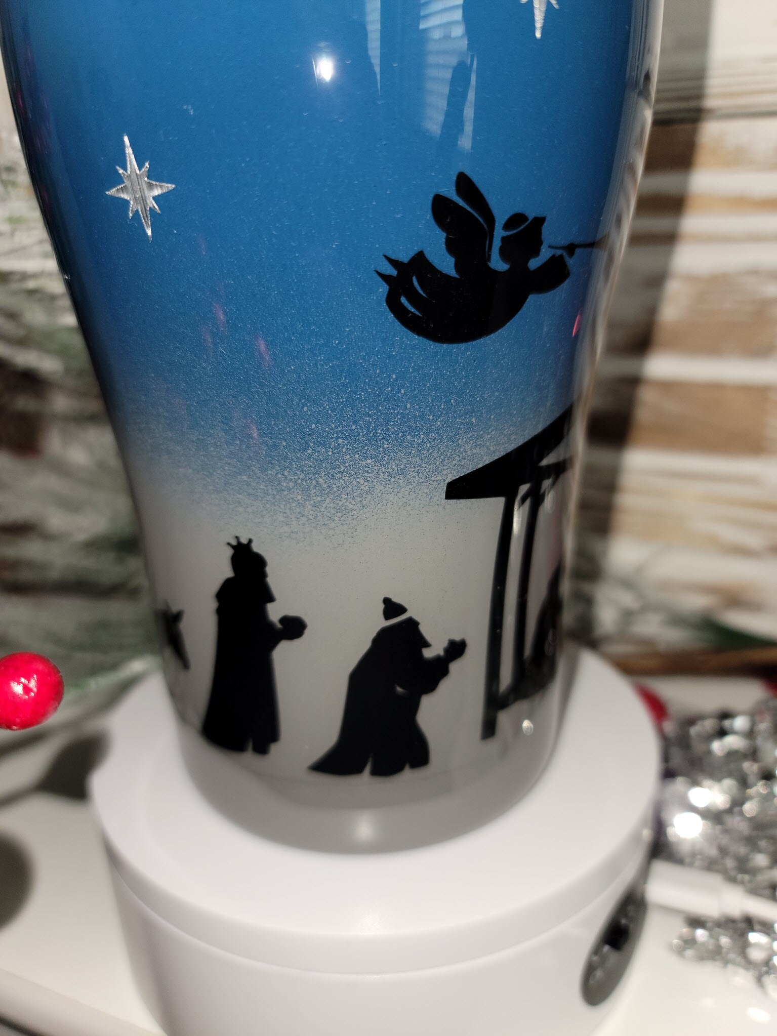 This beautiful epoxy tumbler is painted and decorated with vinyl. It will make a perfect gift for someone, or buy it for yourself.