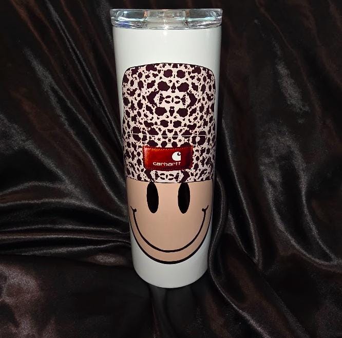 20 oz Skinny Carhart Smiley Face Sublimated Stainless Steel Tumbler