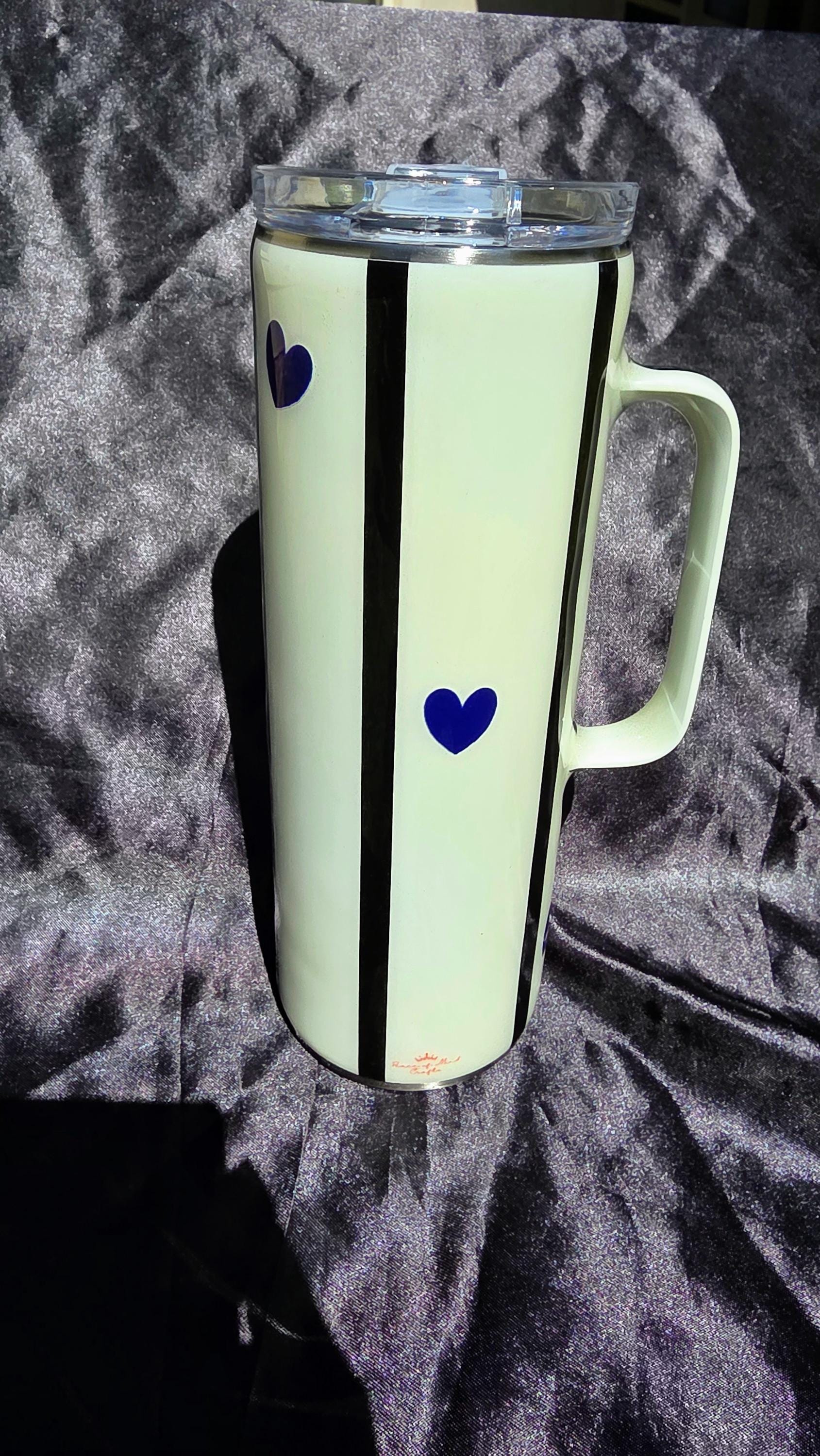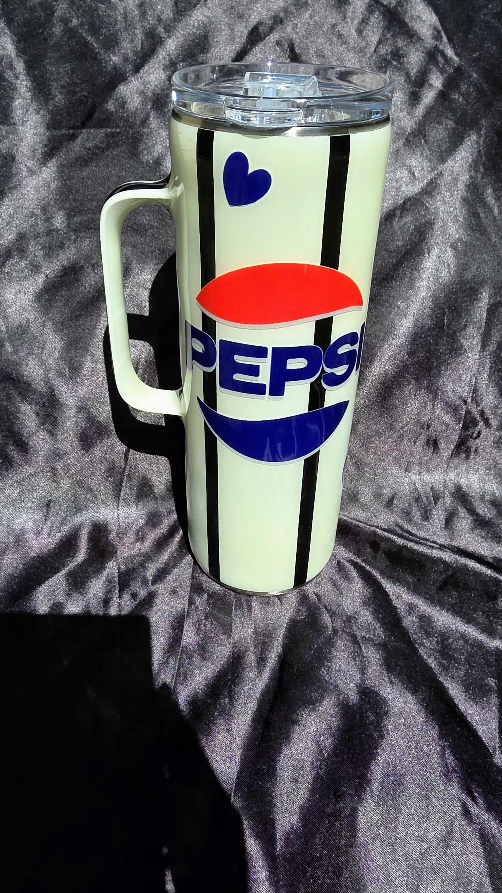 Pepsi Hearts - 20 oz Stainless Steel Striped Soda Tumbler w Handle